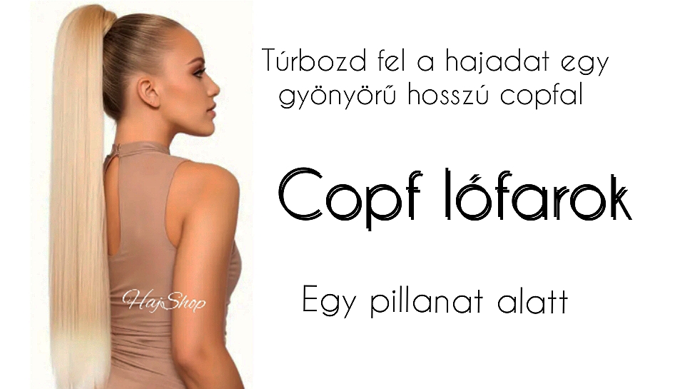 Póthaj copf - lófarok emberi póthaj, fekete 50cm